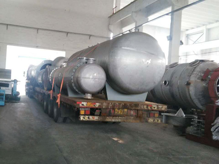 当列管冷凝器串联运行时,要让前面一台冷凝器的换热效率要高于后一台的换热效率。当然这种方式也会存在一些缺点,比如说油的速度加快、流程变长,流程的阻力损失会变大,油泵消耗的功率也要变大。